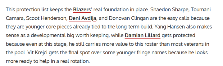该好意思媒认知谈:这份保护名单保留了斥地者确凿的中枢班底。夏普、卡马拉、亨德森、阿夫迪亚和克林根皆是毫无悬念的保护东谈主选,因为他们是球队永久重建盘算推算里的年青中枢。