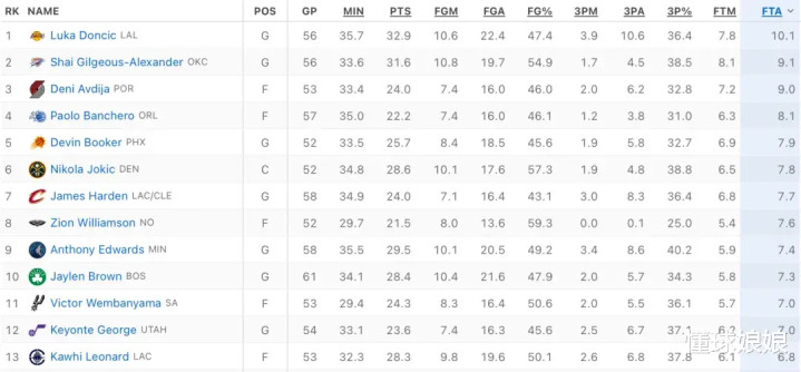 本赛季的罚球榜👇